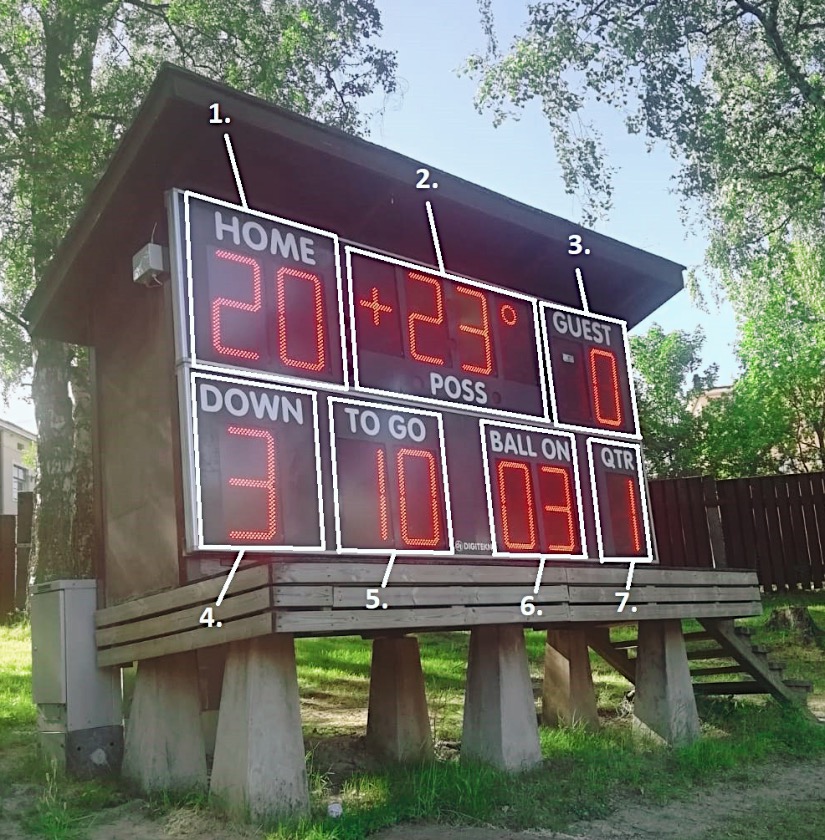 2. Poss-kohdassa on yleensä jäljellä oleva pelikello. Kuvanottohetkellä peliajan sijaan katsojia informoitiin ilman lämpötilasta.